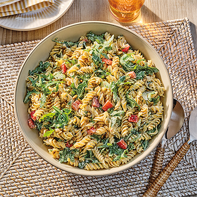 This bright and protein-rich pasta salad is tossed in a Greek yogurt dressing for extra creaminess and tang. Serve with Stanley Park Trailhopper Non-Alcoholic IPA or Jackson-Triggs Reserve Winemaker’s Series Sauvignon Blanc.Ingredients