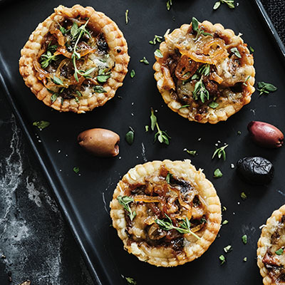 The unmistakable, luxurious aroma of truffles draws your palate to the sweetness of shallots and the earthy umami of mushrooms, all cradled in crumbly pastry. With creamy, cheesy comfort in each bite, these are so delicious, you’ll have to remind yourself to save some for your guests! Serve these Truffled Mushroom & Shallot Tartlets with Louis Roederer Collection Champagne Brut or Quails’ Gate Pinot Noir.Ingredients
