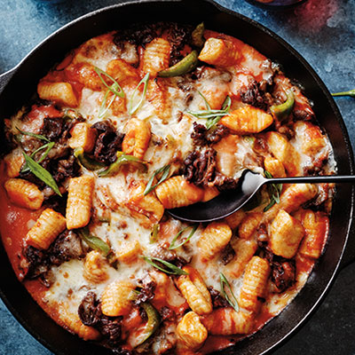 A cozy Korean Italian mashup: sweet-soy marinated beef bulgogi, creamy gochujang sauce and pillowy gnocchi—standing in for the classic, chewy Korean rice cakes—all baked under a layer of bubbling mozzarella. Serve this dish with Sandhill Cabernet Merlot or Ed Edmundo Malbec.Ingredients
