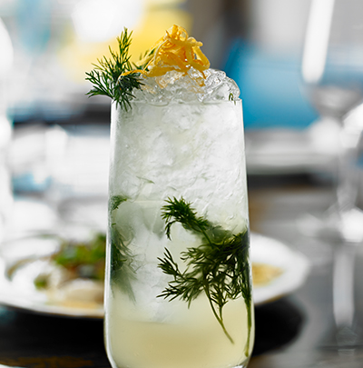 - Pour limoncello, lemon juice and Prosecco into a glass with ice. Gently stir to combine and garnish with a skewer of blueberries.