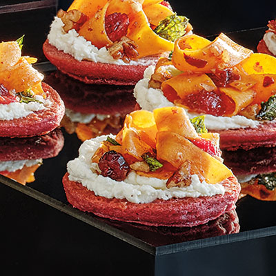 These colourful cocktail bites bring together seasonal flavours in the most delightful way. Did you know that butternut squash is technically a fruit? Its natural sweetness pairs beautifully with the earthiness of the beet blini, creating a perfectly balanced bite. Enjoy this appetizer with Absolut Vodka.Ingredients